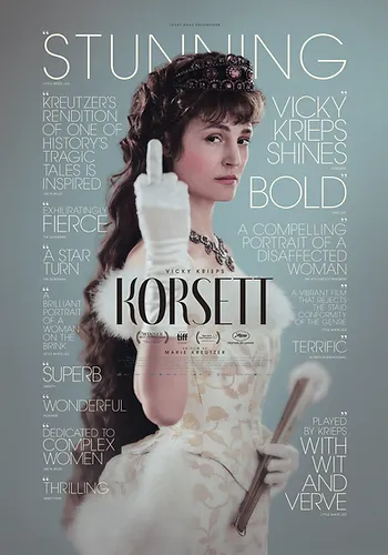 KorsettKorsett berättar om den 40årskrisande Elisabeth av Österrike vars korsett stramar mer och mer. Kejsarinnan är vida känd för sin skönhet och extravagans men när hon fyller 40 år, förväntas hon inta en mer tillbakadragen roll. Men Elisabeth är fast besluten att upprätthålla sin image och snörar korsetten allt hårdare. Äktenskapet med Franz Joseph skaver och Elisabeth vägrar inordna sig i den kejserliga etiketten. Hon smider egna planer. Episodiskt kostymdrama med moderna element och en fantastisk Vicky Krieps i rollen som Sissi. |