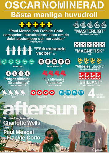 AftersunElvaåriga Sophie och hennes pappa Calum är på solsemester i Turkiet, deras första semester efter skilsmässan. Med hjälp av minnesfragment och filmer från resan försöker Sophie 20 år senare pussla ihop bilden av sin far, vem var han? Hon minns en somrig idyll vid poolen men där fanns också en glimt av vuxenvärldens problem, sorger och nedstämdhet. Det ömsinta samspelet mellan far och dotter är filmens stora behållning. |