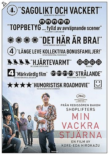 Min vackra stjärnaTvå vänner driver en olaglig verksamhet tillsammans: de stjäl spädbarn från den närliggande kyrkans babybox och säljer dem på den illegala adoptionsmarknaden. När en ung mamma återvänder för att hämta barnet hon precis lämnat, upptäcker hon dem och bestämmer sig för att följa med på en roadtrip för att intervjua potentiella föräldrar till barnet. Samtidigt är två detektiver dem på spåren. Hyllade regissören Kore-eda Hirokazu är tillbaka med en finstämd historia fylld av humor och hjärta. |